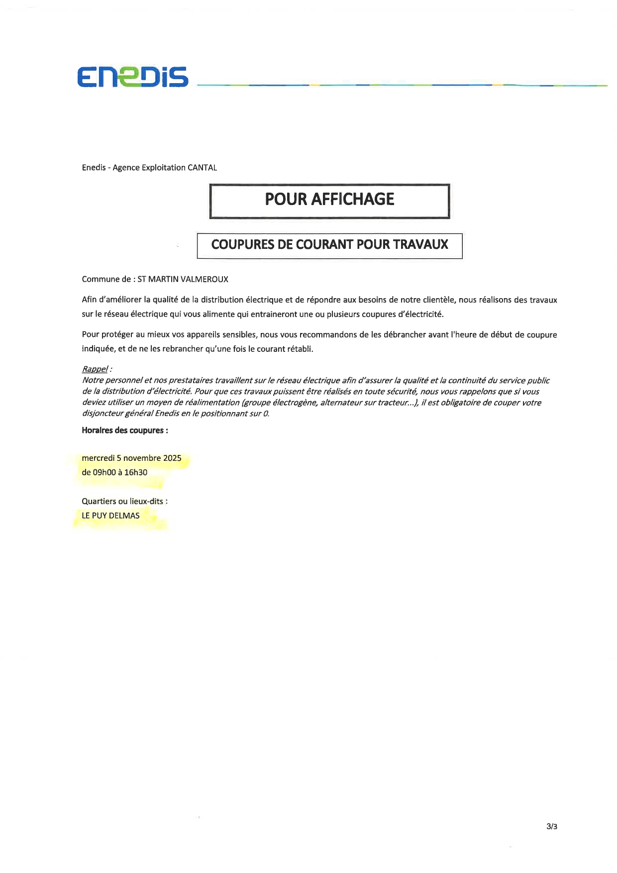 Coupures d'électricité